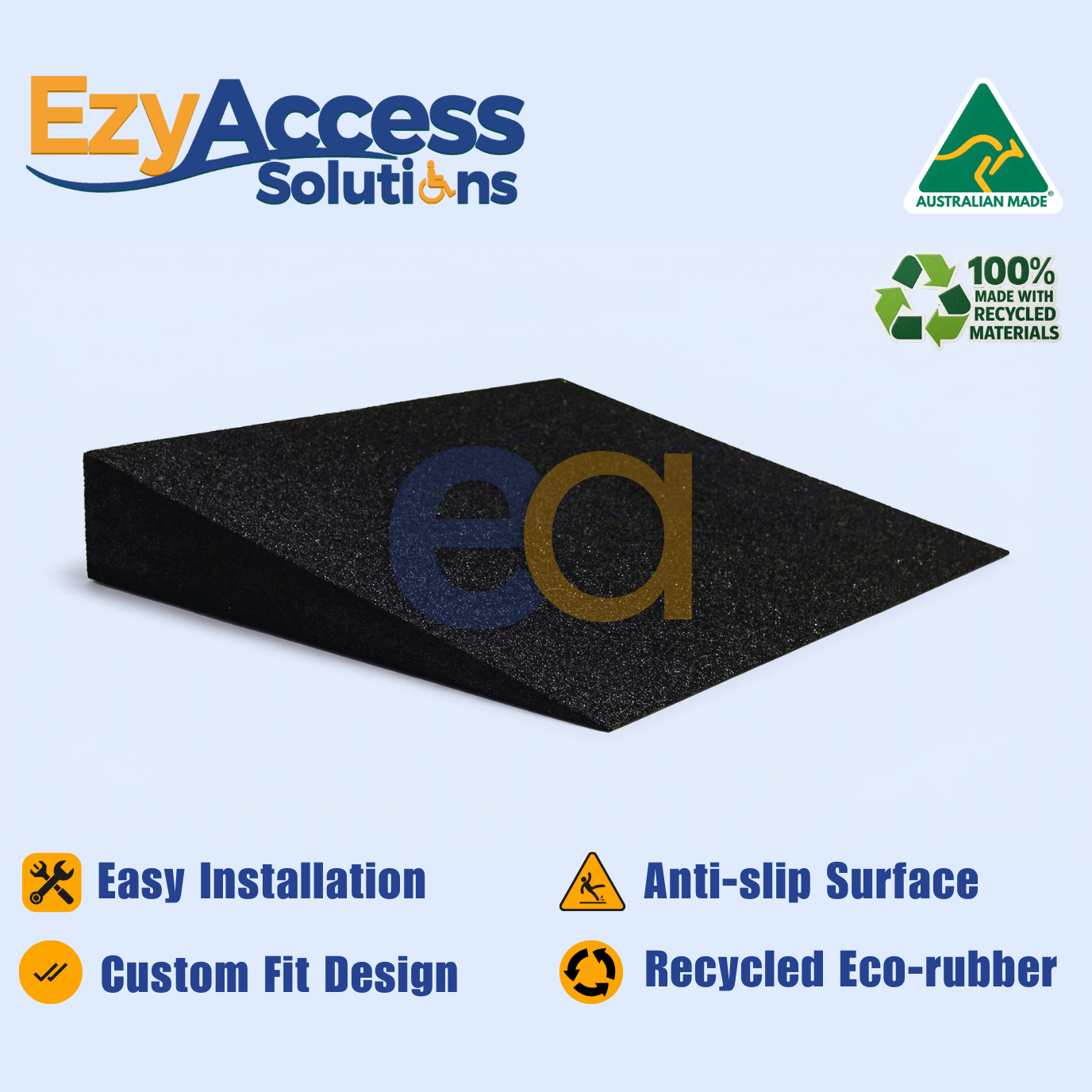Produced by Ezy Access Solutions, these ramps are manufactured using high-quality recycled rubber to ensure long-term strength and stability. The solid construction helps keep the ramp securely positioned without the need for permanent fixing, while the textured surface improves grip and safety during use.